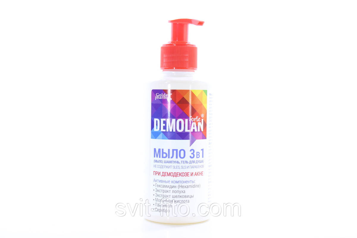 Демолан форте мыло 3 в 1 разработано с учетом физиологии кожи, пораженной клещем демодекс, а также кожи склонной к акне. Высокую степень эффективности оказывает сочетание растительных компонентов и активных субстанций. Средство не вызывает раздражений и ощущение дискомфорта в процессе использования. Не содержит SLES, SLS и парабенов. Изготовлено в соответствии с международными стандартами качества и норм GMP (ISO 22716:2007)